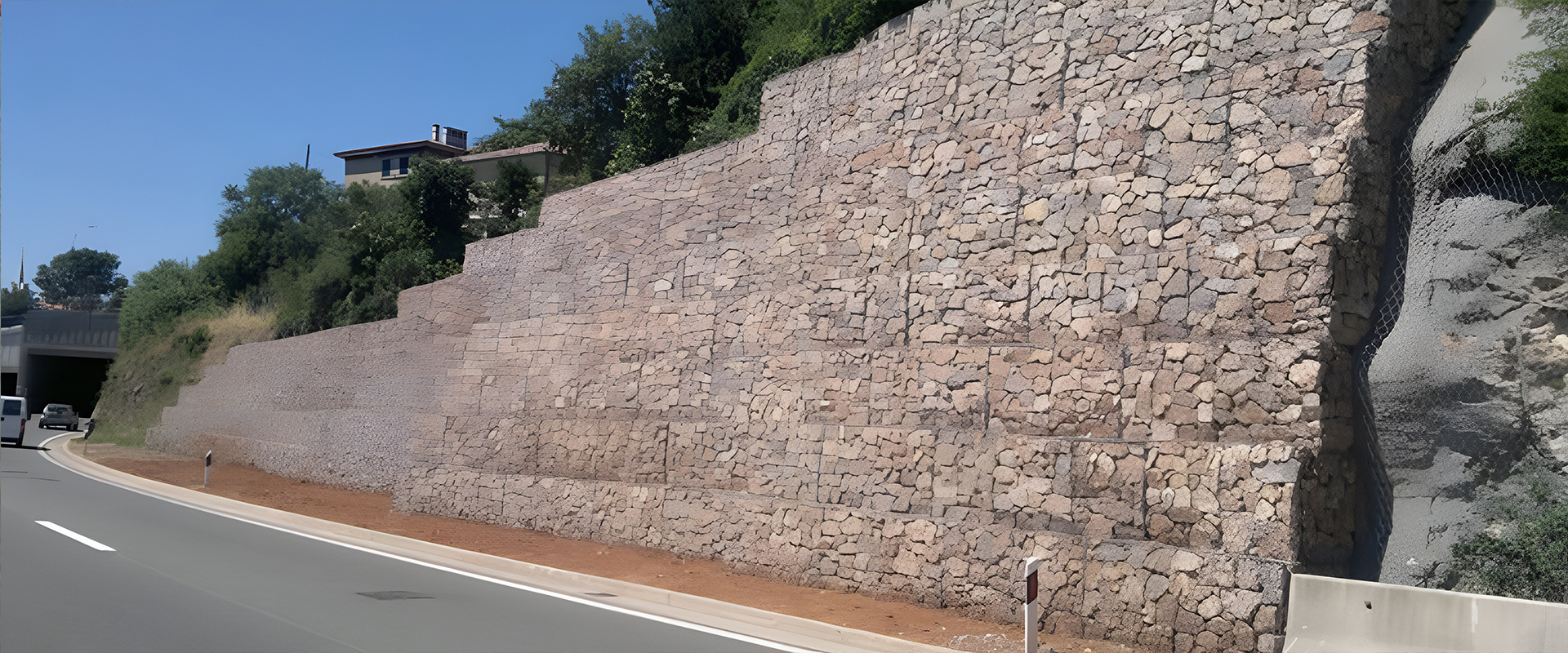 Gabion walls have an application mostly in road engineering, e.g. construction of roads, embankments, retaining walls, slope protection, water barriers etc., and can have different functions: