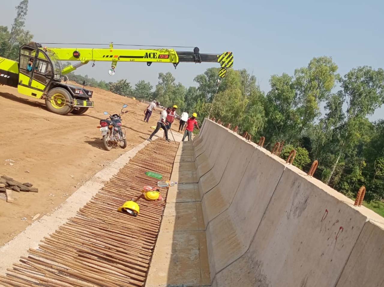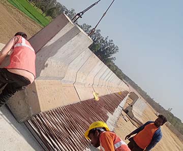 Traffic barriers (Crash barriers) are constructed over the front face of the reinforced walls.