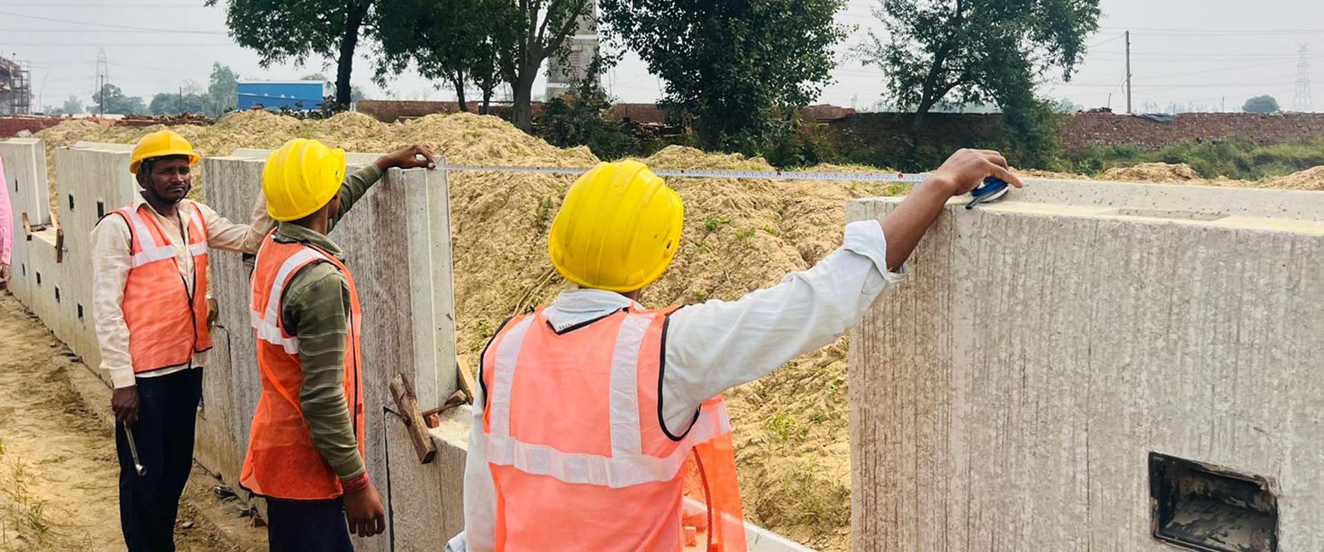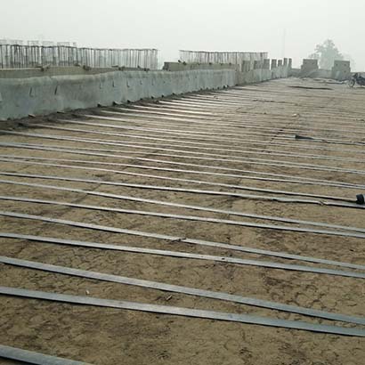 The Connectors are cast into the panels. Geostrips is generally laid in zigzag pattern passing around the rear anchor bars. Rear anchor bar is used just to keep the Geostrips in position during the filling and compaction operation and has no design significance. The Geostrips strips are generally spaced at 1.0 m c/c in horizontal plane and 0.8m c/c in vertical plane.